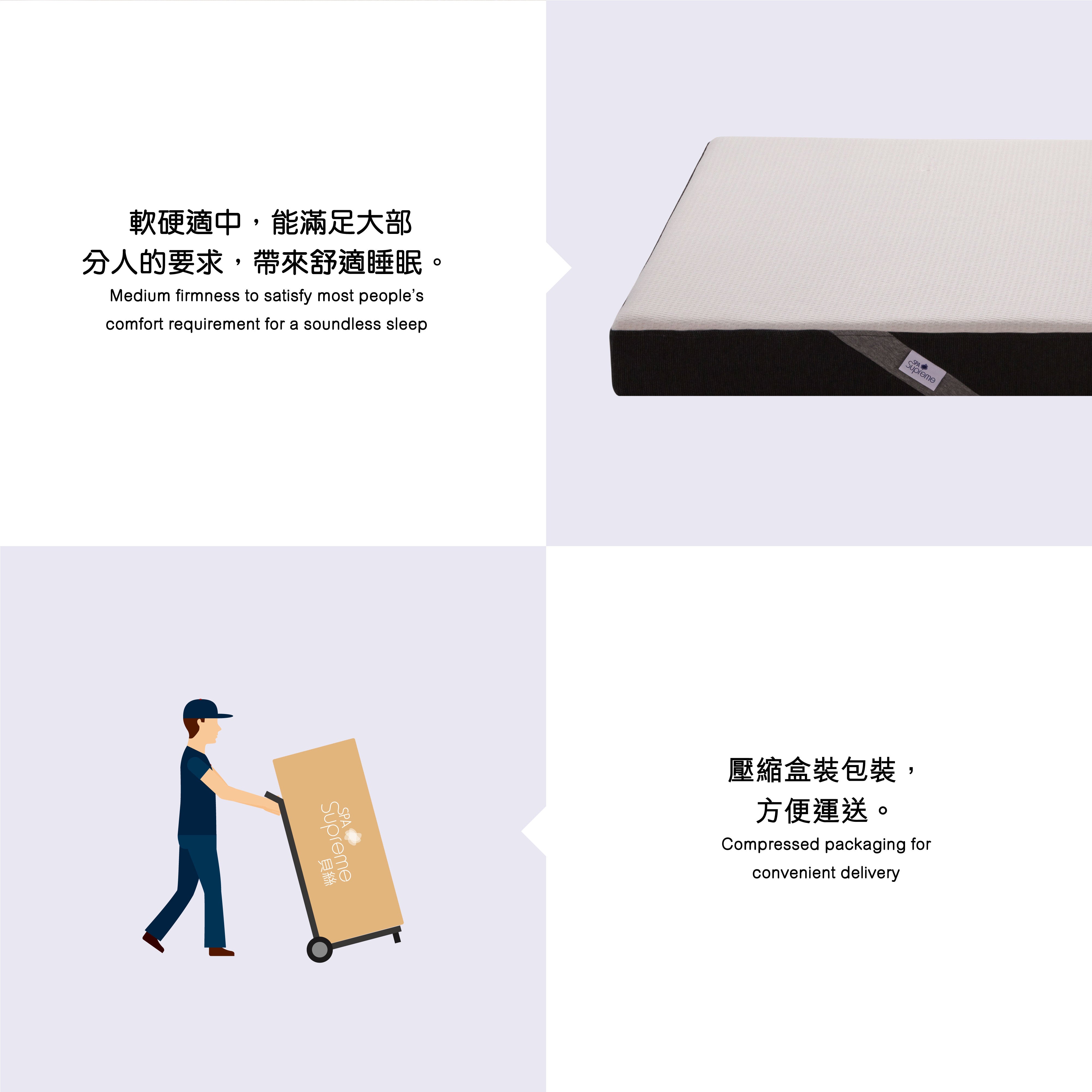 床褥採用太空棉芯,貼合身體輪廓,有效紓緩壓力,同時維持健康脊椎曲線。